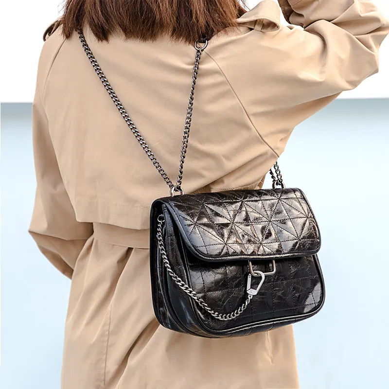Review Top British Fashion Simple Small Square Bag Women's Designer Handbag 2019 High-quality Leather Chain Mo