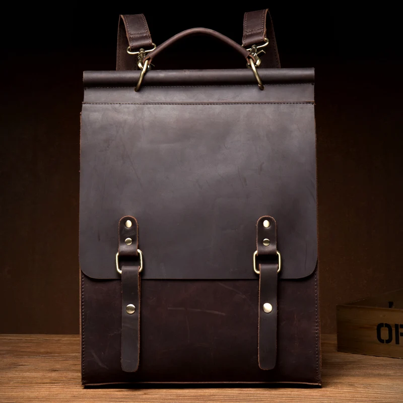 REVIEW TOP SELLER 2019 Male Genune Leather Backpack Brand Handamde Vintage Crazy Horse Leather Daypack Men Designer T