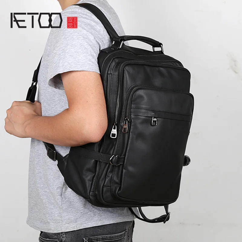 ORIGINAL AETOONew genuine leather backpack men's casual top layer leather backpack female simple schoolbag c