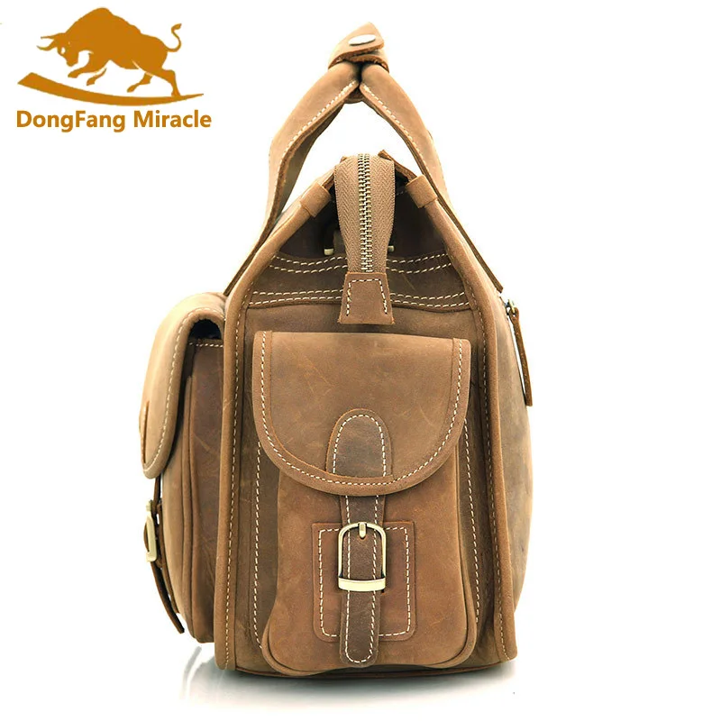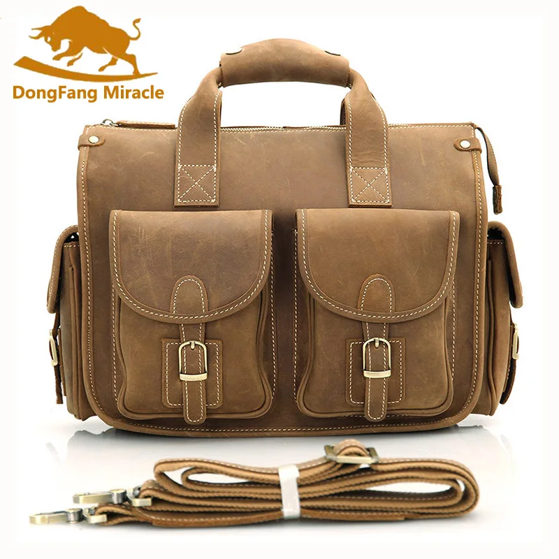 HOT Sale DongFang Miracle 100% Genuine Vintage Crazy Horse Leather Laptop Briefcase Bag Hand bags High Quali