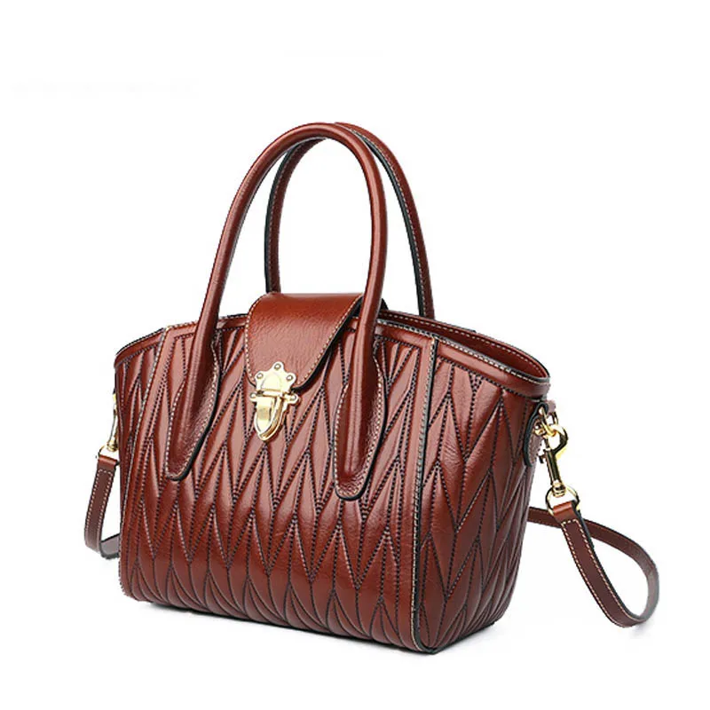 Review Genuine Leather women bags 2019 new retro dumpling bag Fashion first layer cowhide embossed mobile
