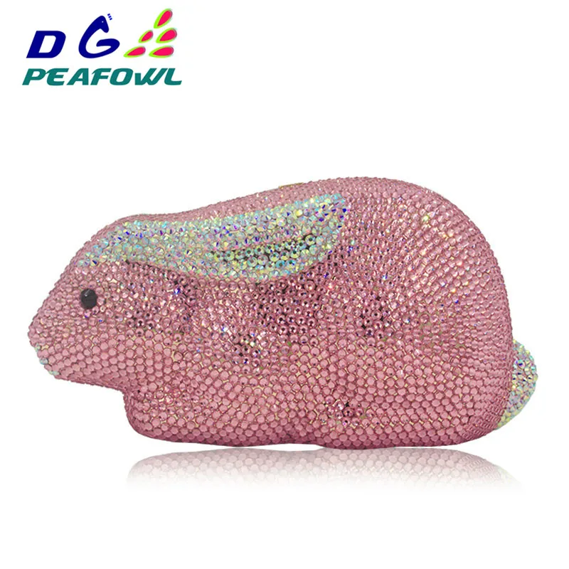 BEST Lovely Pink Rabbit Shape Party Bags Ladies Animal Clutch Bags Luxury Crystal Pochette Wedding Bags