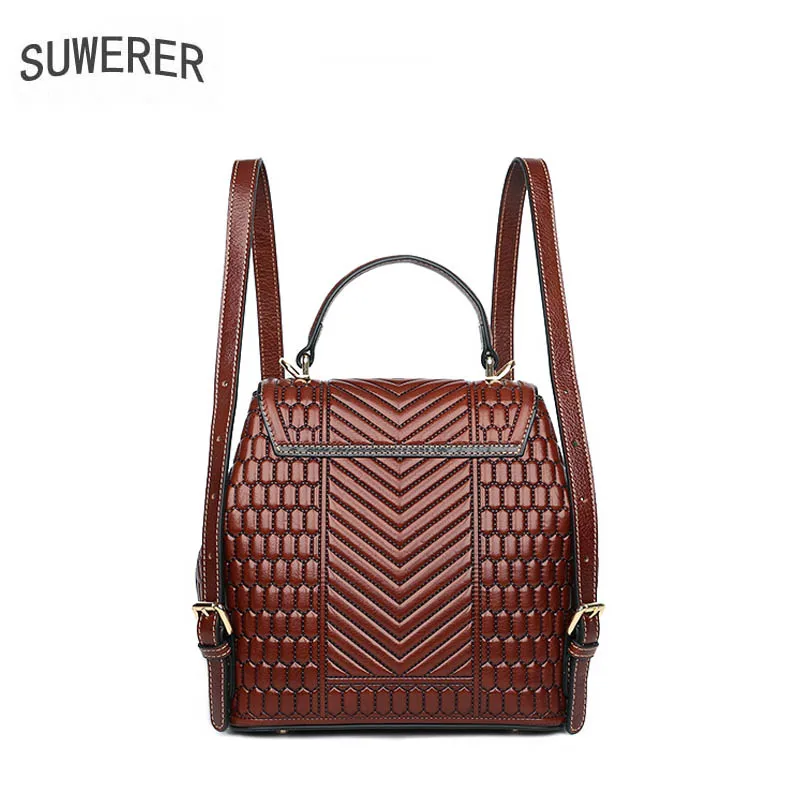 Best Quality SUWERER New Women Genuine Leather bags Fashion embossing bag top cowhide women backpack tote big ba
