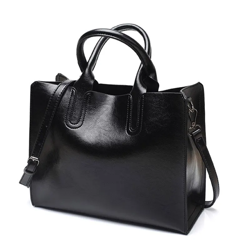 Women's bag genuine leather 2020 brand fashion bag for women H19-001 bag Black big shoulder bag