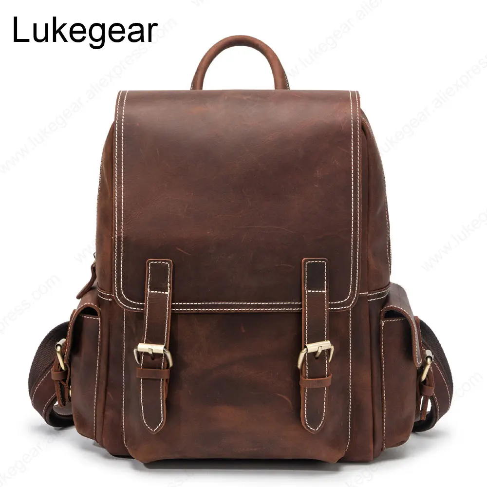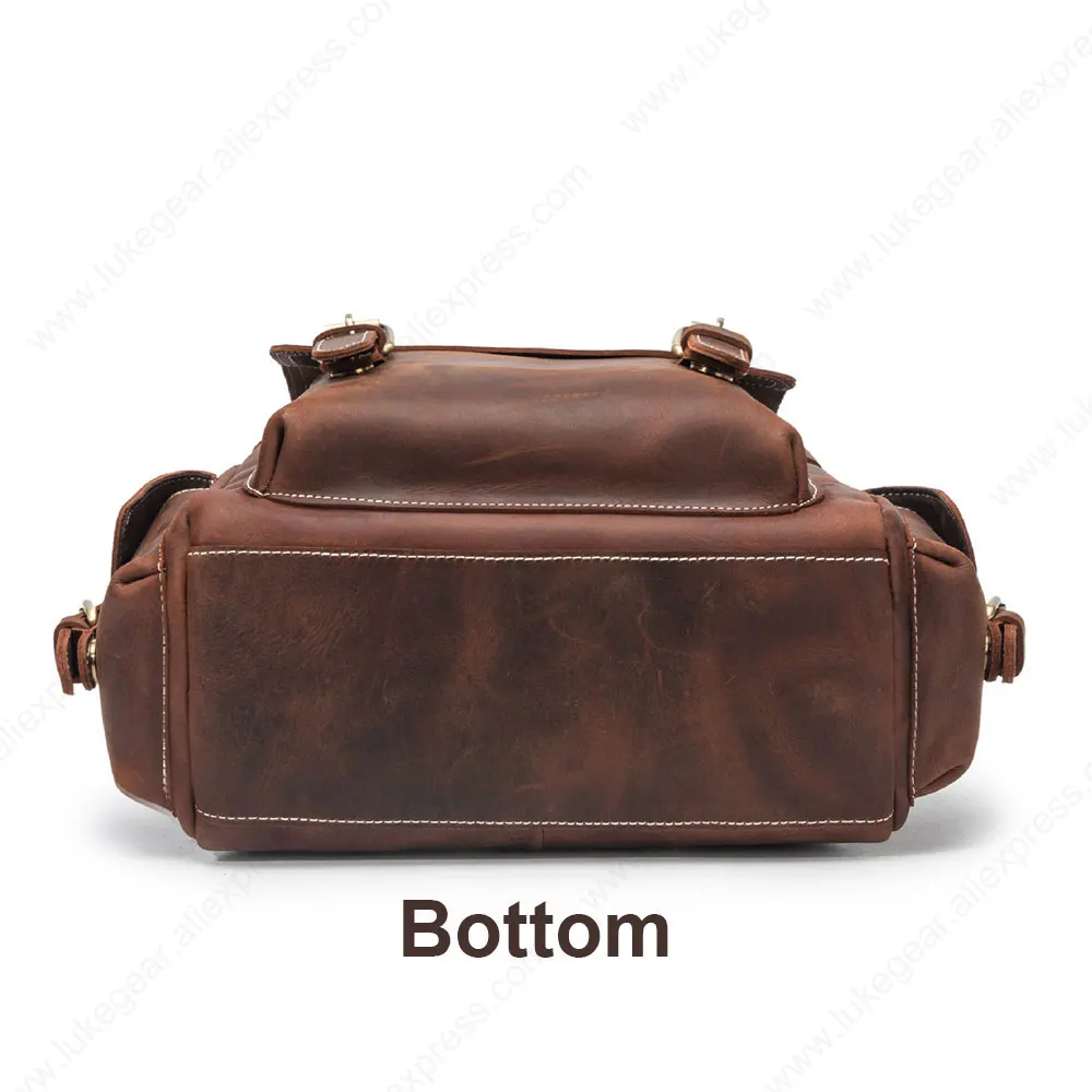 TOP Vintage Style Handcrafted Travel Backpack Leather Brwon Khaki Genuine Leather Backbag Classic Bags