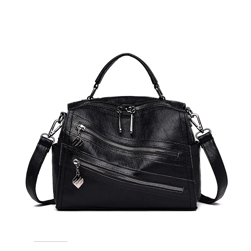 Hot Sale ZDG handbags women genuine leather shoulder bag black 2019 zip pocket bag for women ladies tote bag