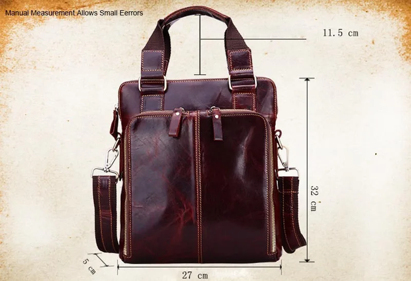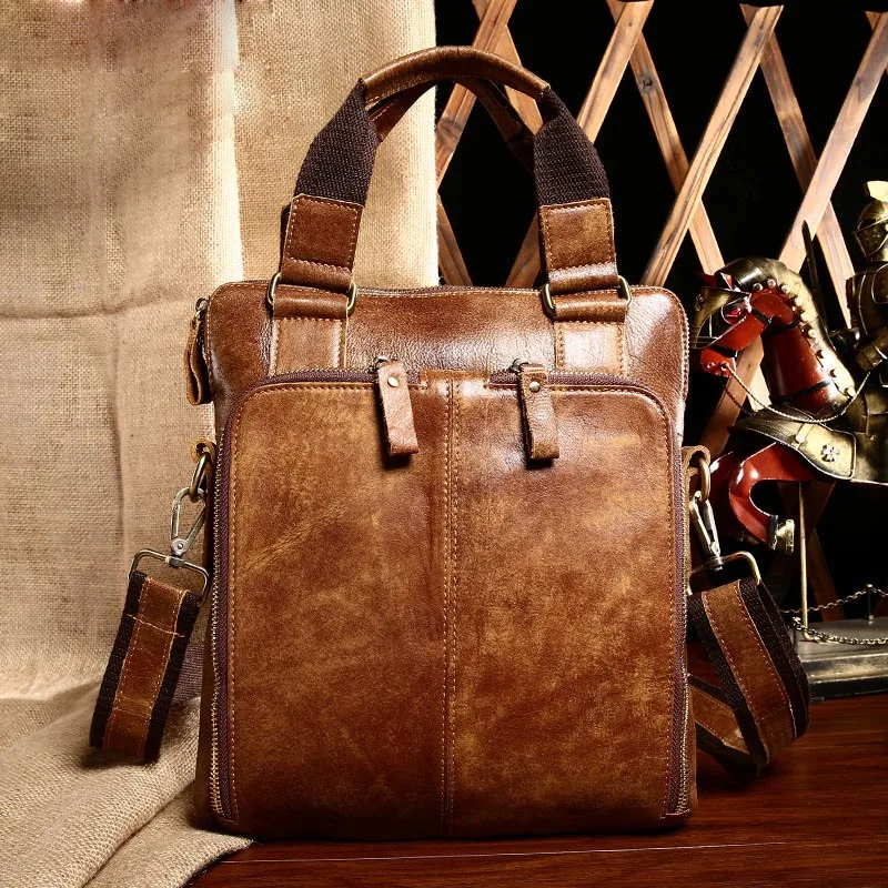 BEST Vintage Cowhide Genuine Leather Handbag Messenger Bags Business Crossbody Shoulder Bag Man Thread T