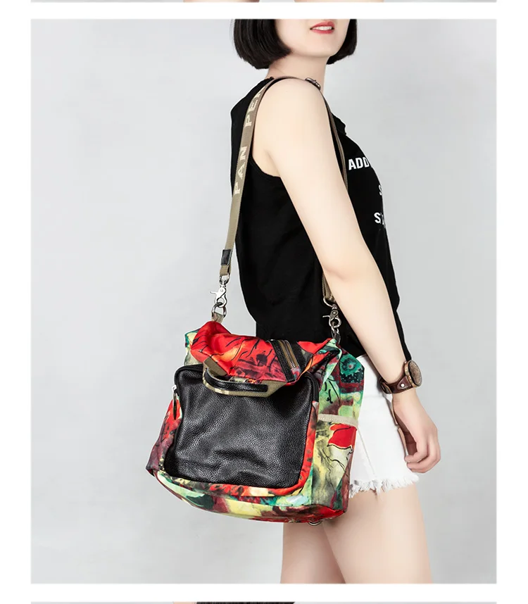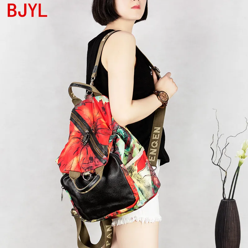 2019 New canvas with leather Women backpack fashion printing flowers large capacity travel backpack