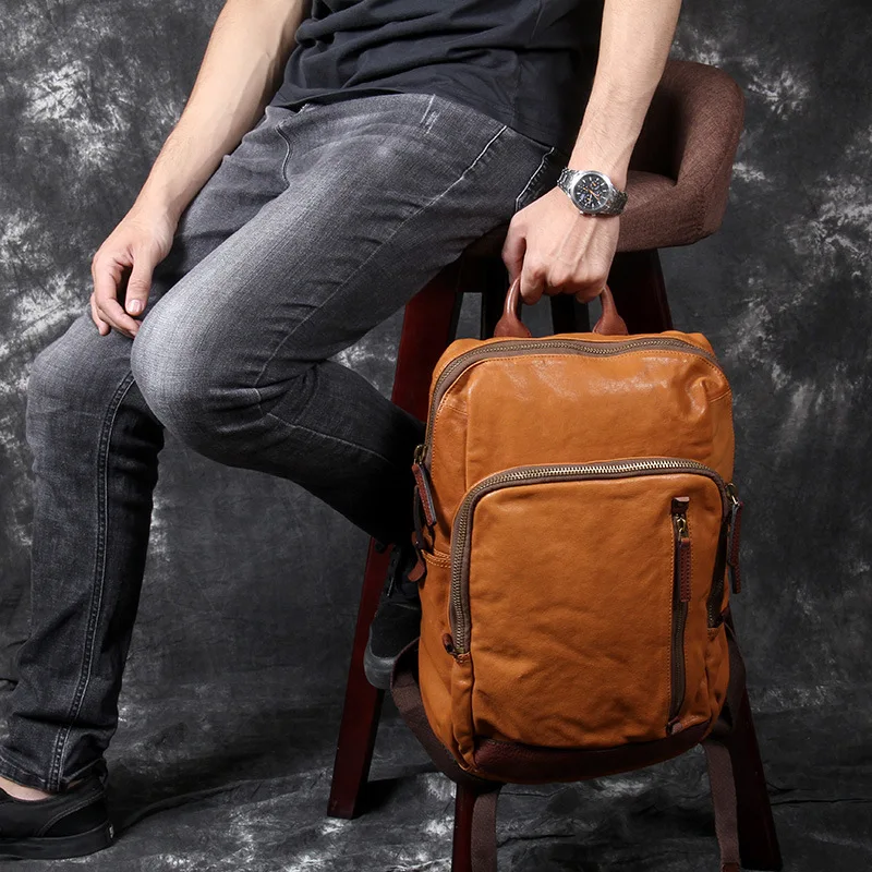New casual vintage suede leather men's backpack original handmade male laptop bag vegetable tanned