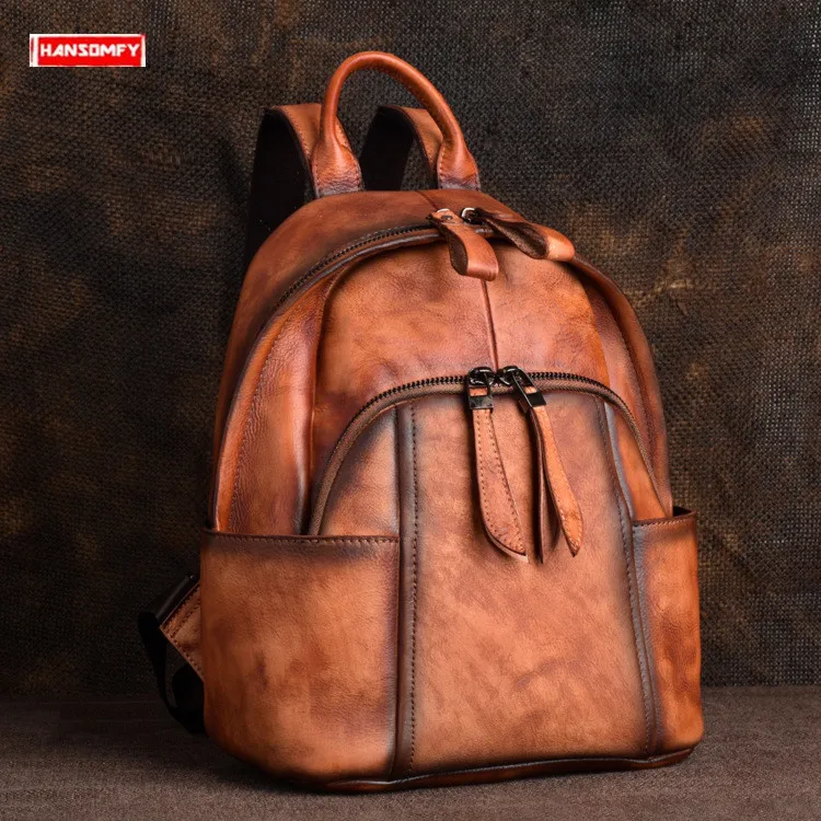 Hot Sale Original hand-wiping Women backpack genuine leather shoulder bag casual female first layer leather