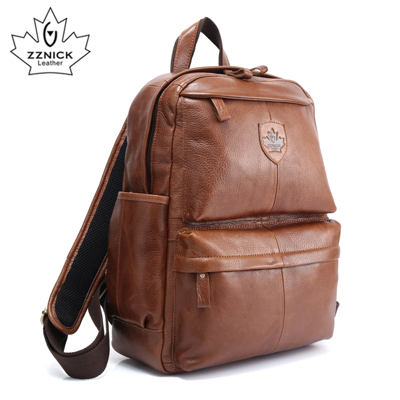 HIGH QUALITY ZZNICK Top Quality Cowhide First Layer Knapsack Male Computer Bag School Bags Vintage Genuine Leath