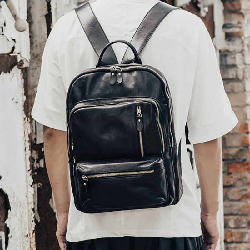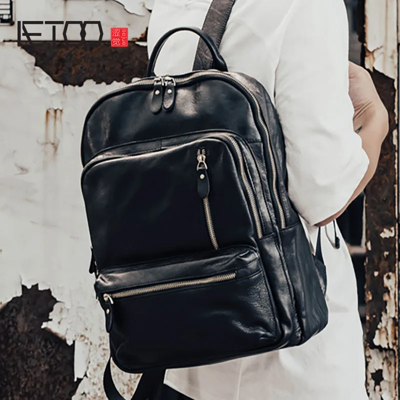 AETOO Leather men's shoulder bags head leather travel backpacks fashion fashion bags business compu
