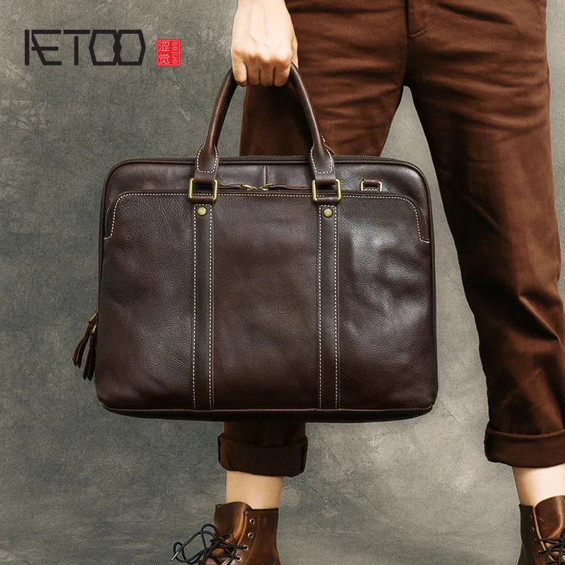 AETOO Vintage handmade men's horizontal leather computer bag business leather high-end briefcase