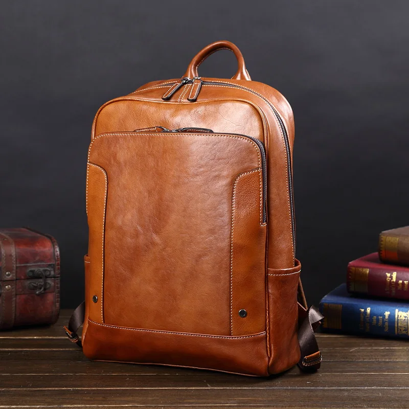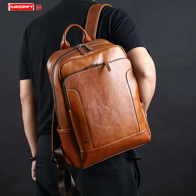 HOT SALE Men's Backpack Leather Large Capacity Business Casual Youth Computer Backpack men Fashion Korean Tr