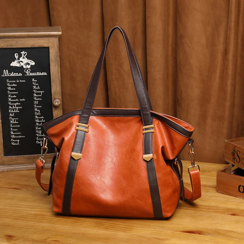 BEST SELLER Vintage Boston Rivet Genuine Leather Luxury Handbags Women Messenger Bags Designer Shoulder Bag Fem