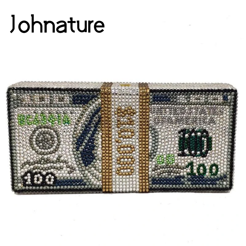 ORIGINAL Johnature Fashion New Women Clutch Bag Diamond Evening Bags Party Purse Crystal Money Dollar Bags L