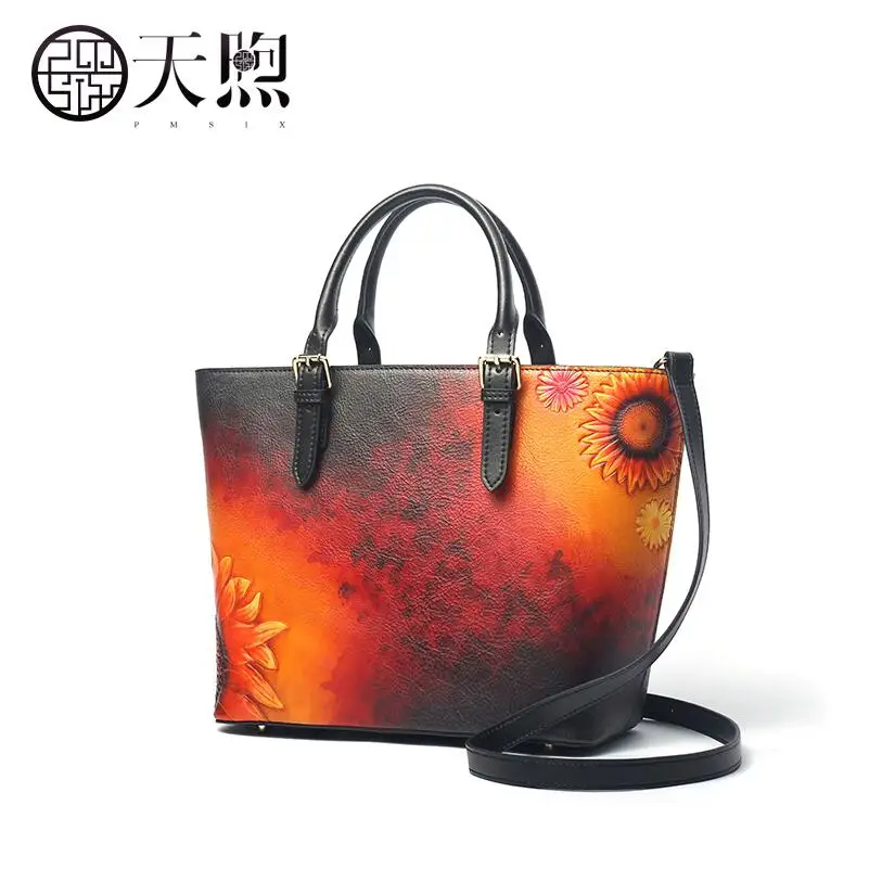 BEST QUALITY Pmsix Leather leather bag 2019 new ethnic style print handbag Luxury printed shoulder messenger bag