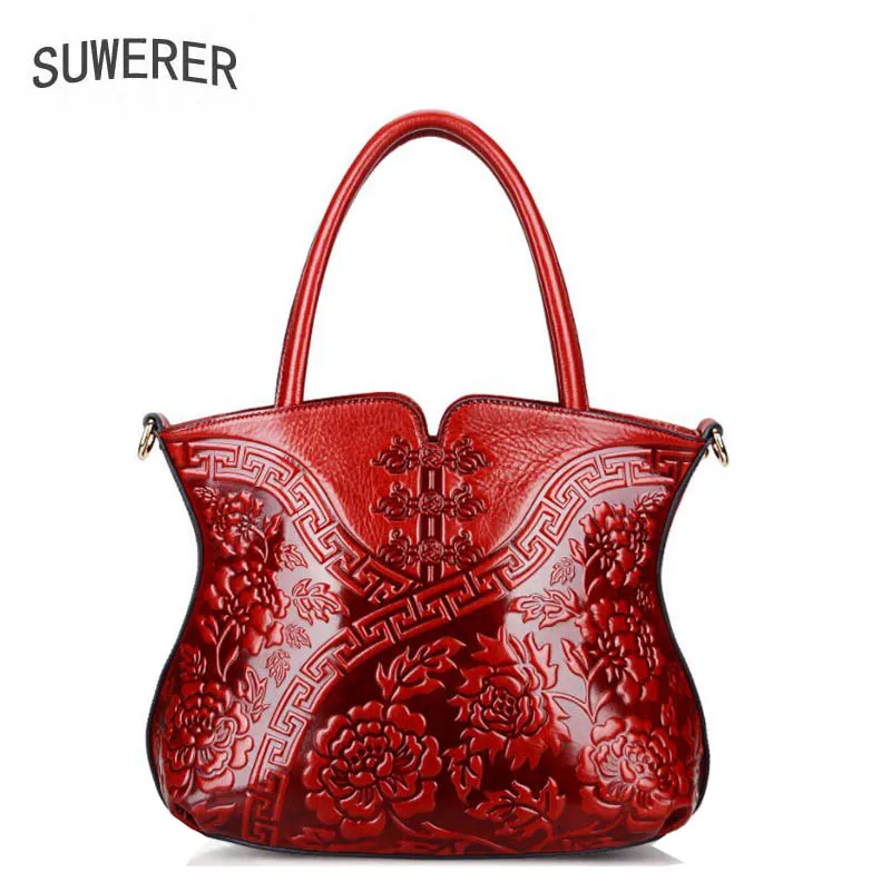 HIGH QUALITY SUWERER 2019 new genuine leather women bags Embossed Flower luxury handbags women bags designer bag