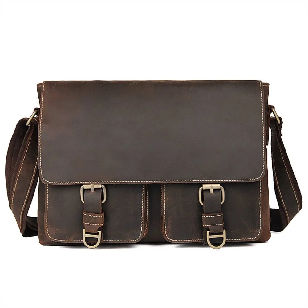 Review Brand Crazy Horse Leather Men Bag Trave Casual Business Vintage Ipad Mens Messenger Bag Fashion Men