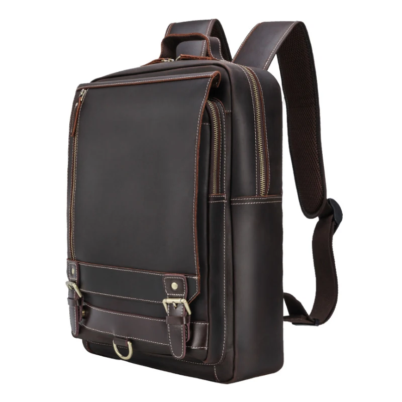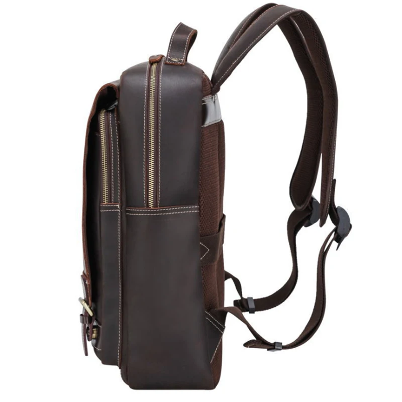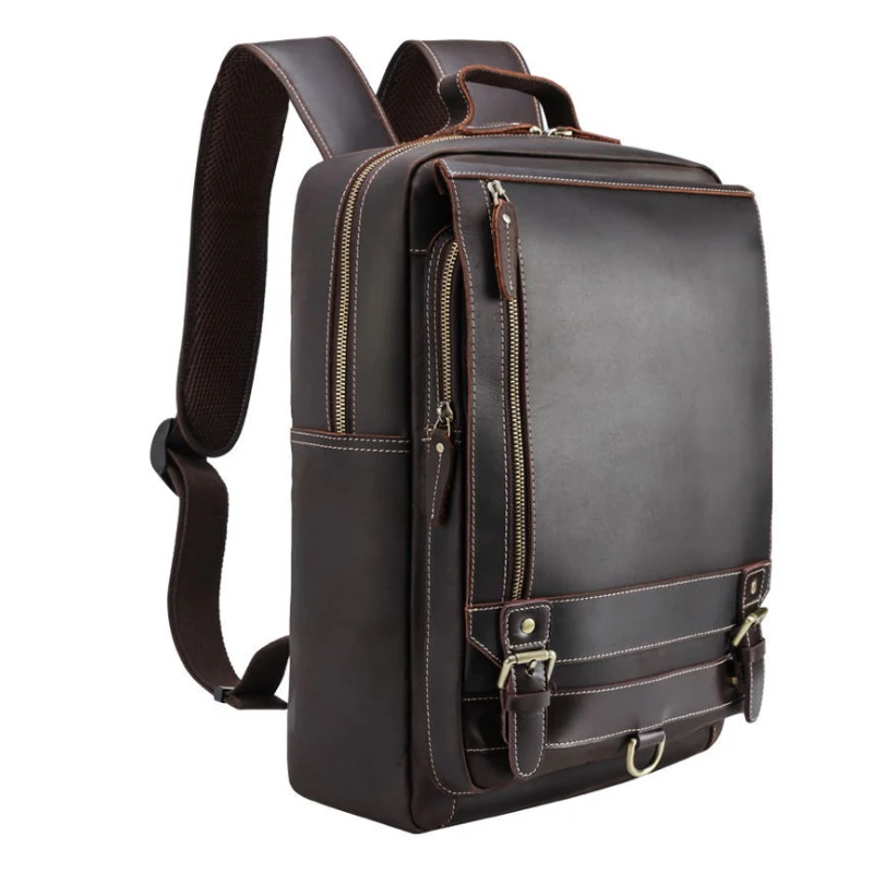 TOP MAHEU Large Leather Backpack Genuine Leather 15.6 inch Computer Backpack Real Cowhide Laptop Bag Vi