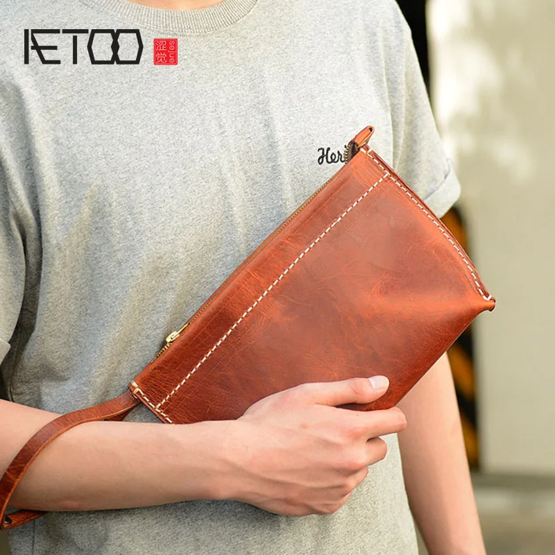HIGH QUALITY AETOO Handmade vintage leather handbag men's leather handbag large-capacity hand-picked bag