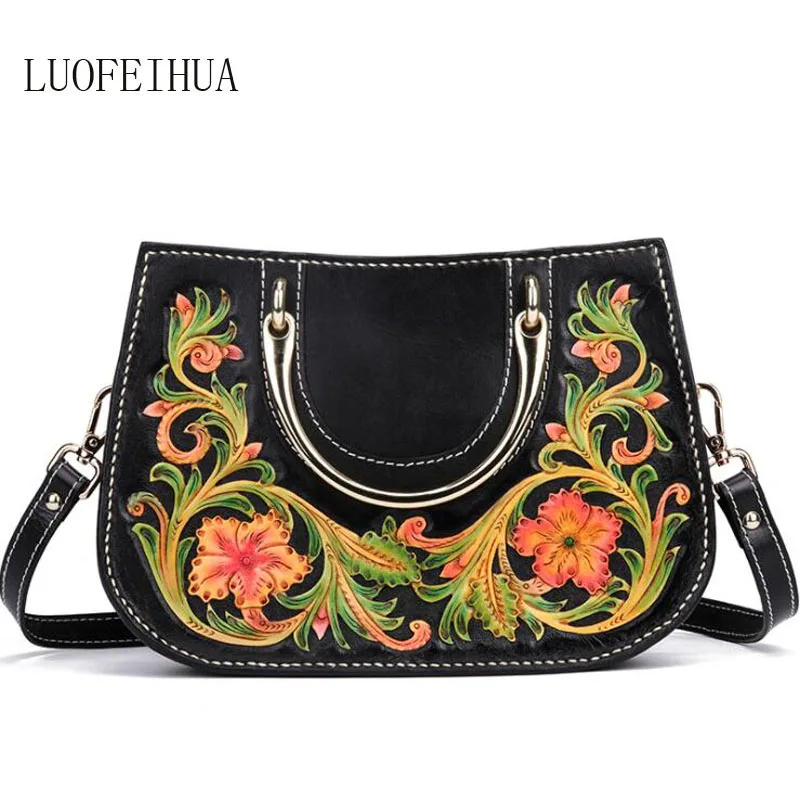 HIGH QUALITY Women Genuine Leather bag 2019 luxury original leather carving handbag handbag Handmade ethnic wind