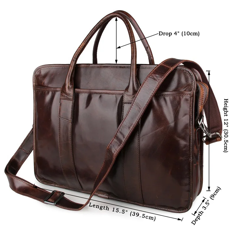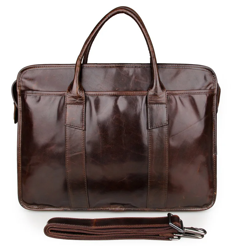 TOP Mens Briefcases Genuine Leather Brown 2019 Man Briefcase Handbags 15" Business Vintage Travel Shoul